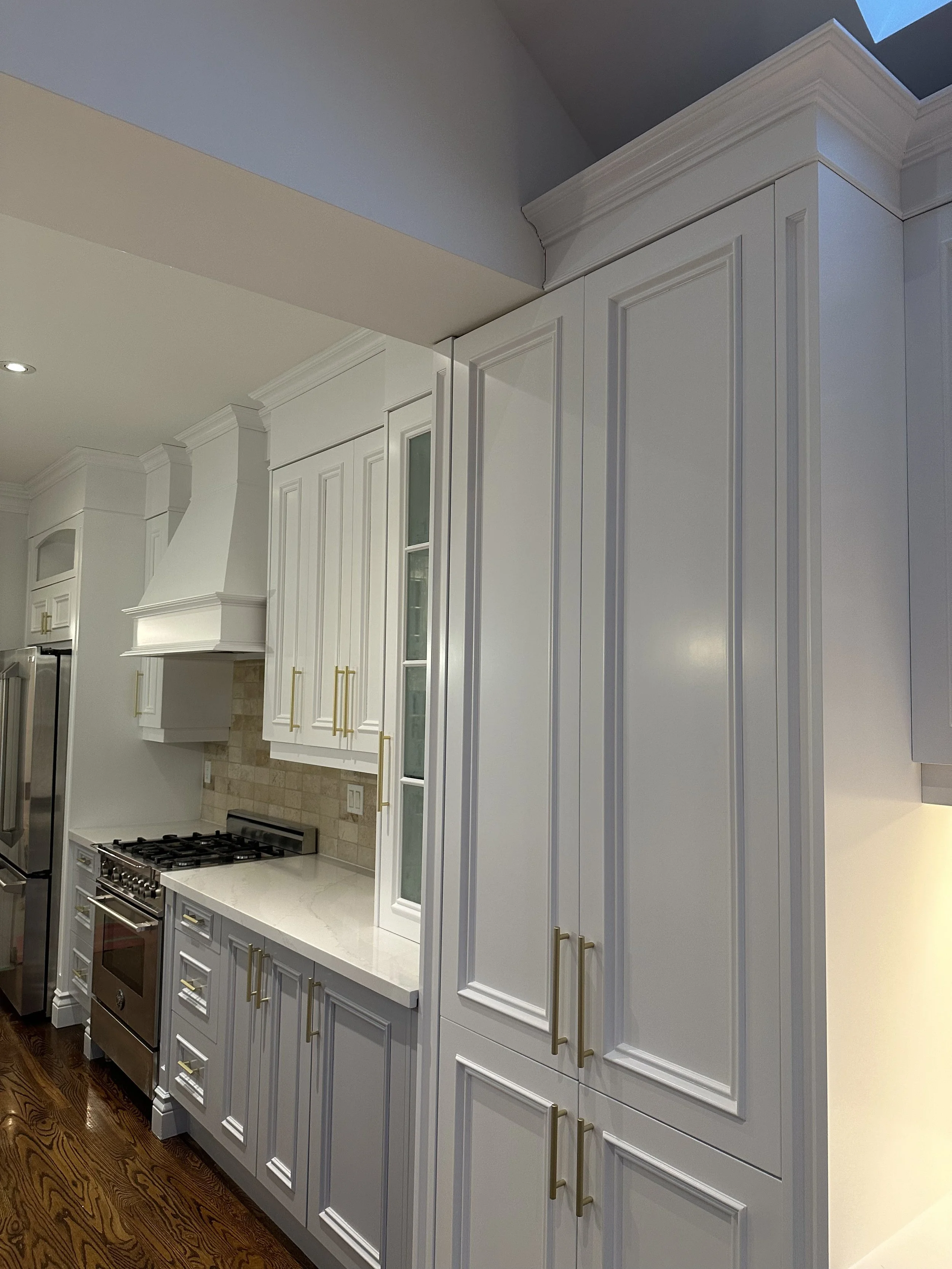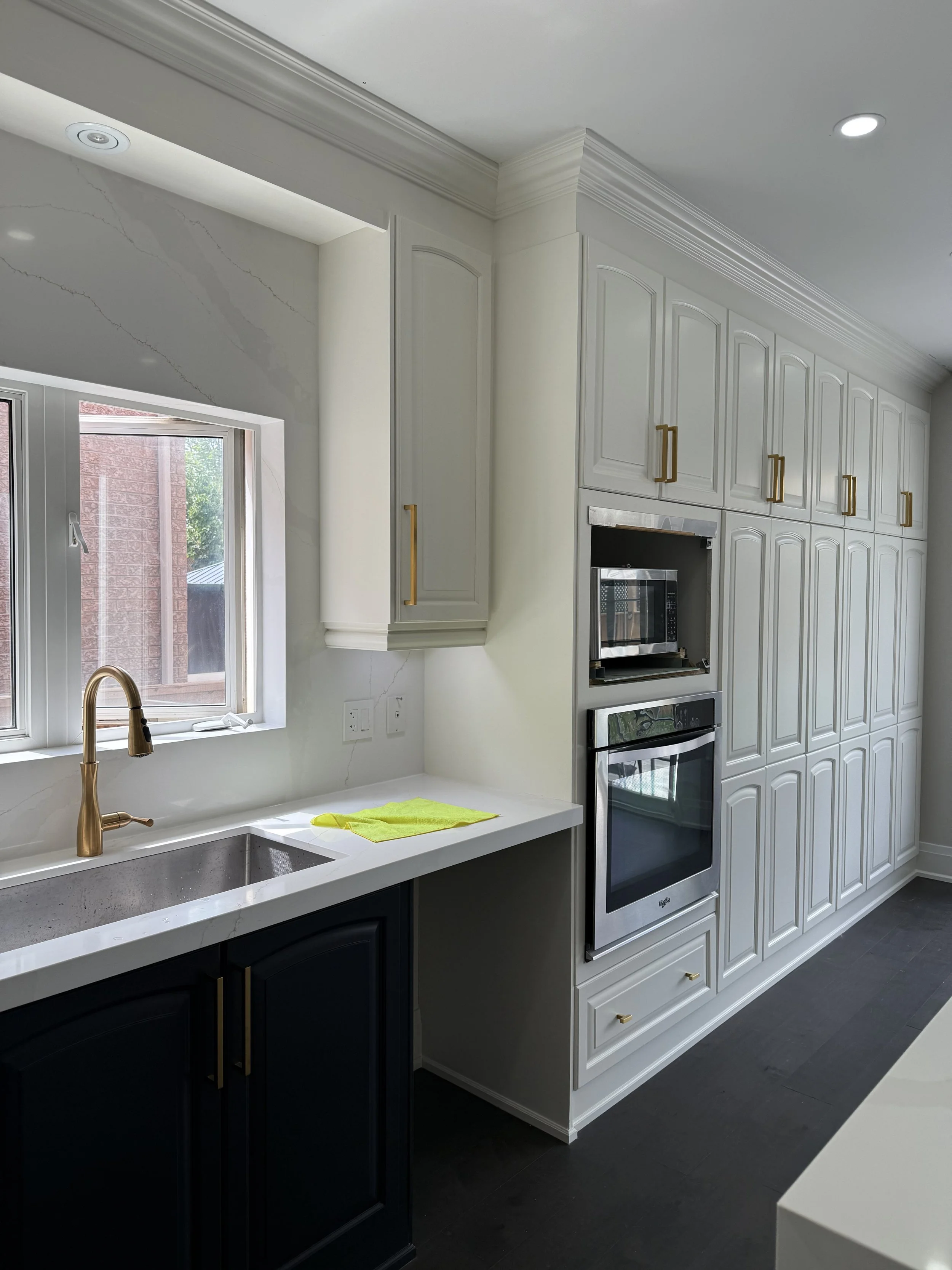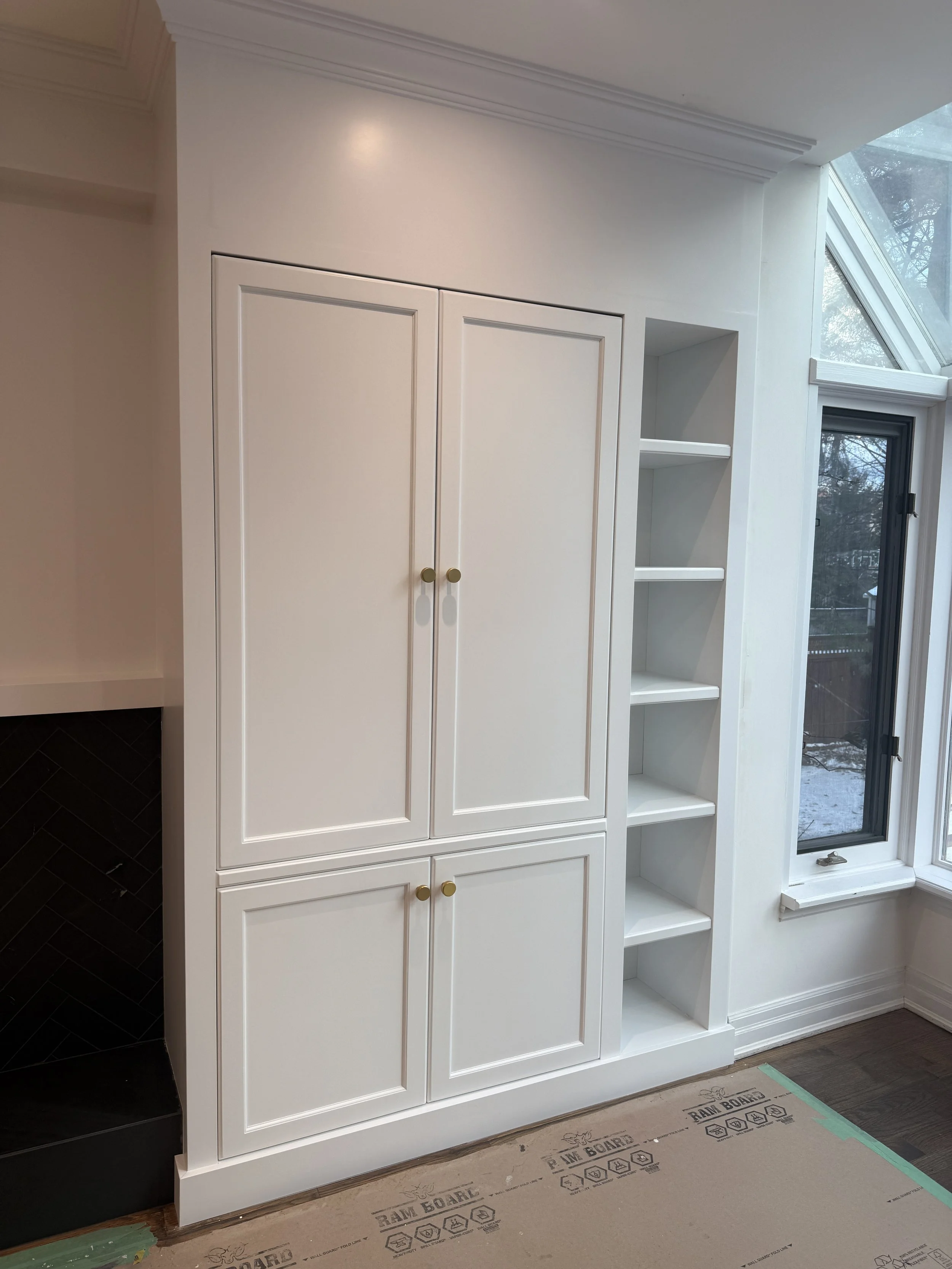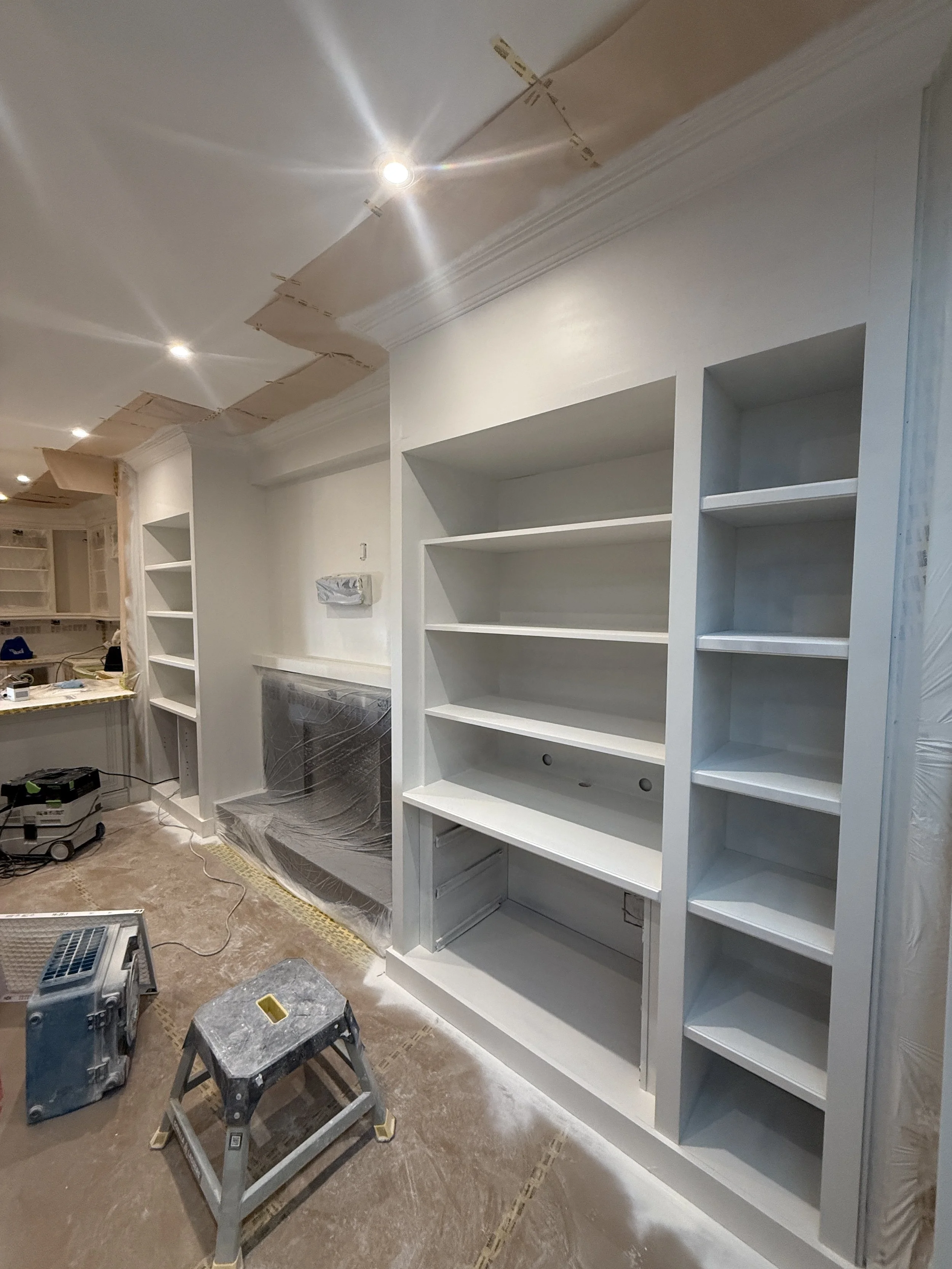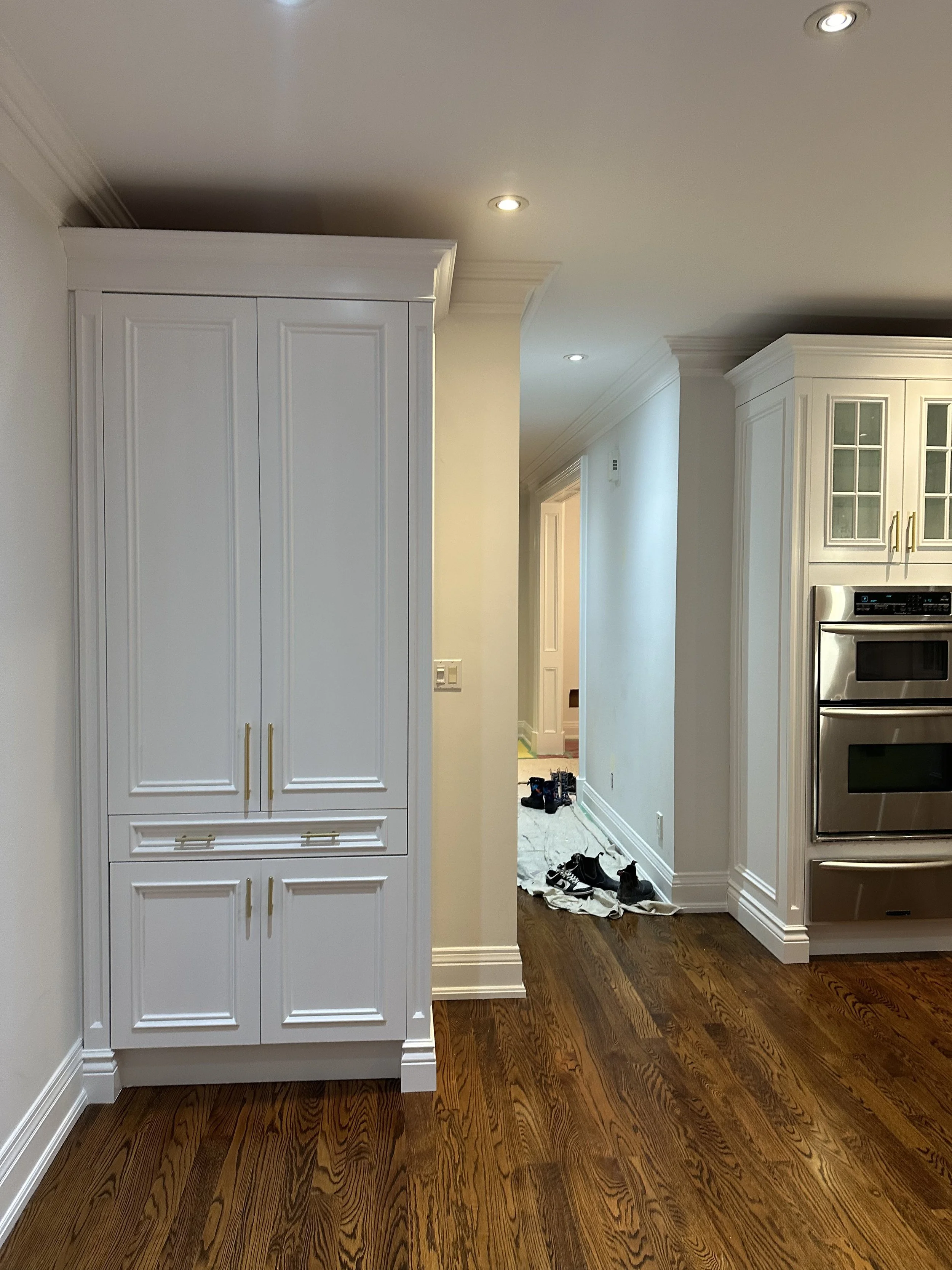 Spraying cabinets on-site allows for greater control over fit, finish, and consistency while avoiding the added cost and risk associated with transporting cabinetry. By eliminating the overhead of an off-site spray facility, I’m able to pass those savings directly on to the client—without compromising quality. Cabinet doors and boxes receive the same level of finish on-site, resulting in a more seamless and refined final product.