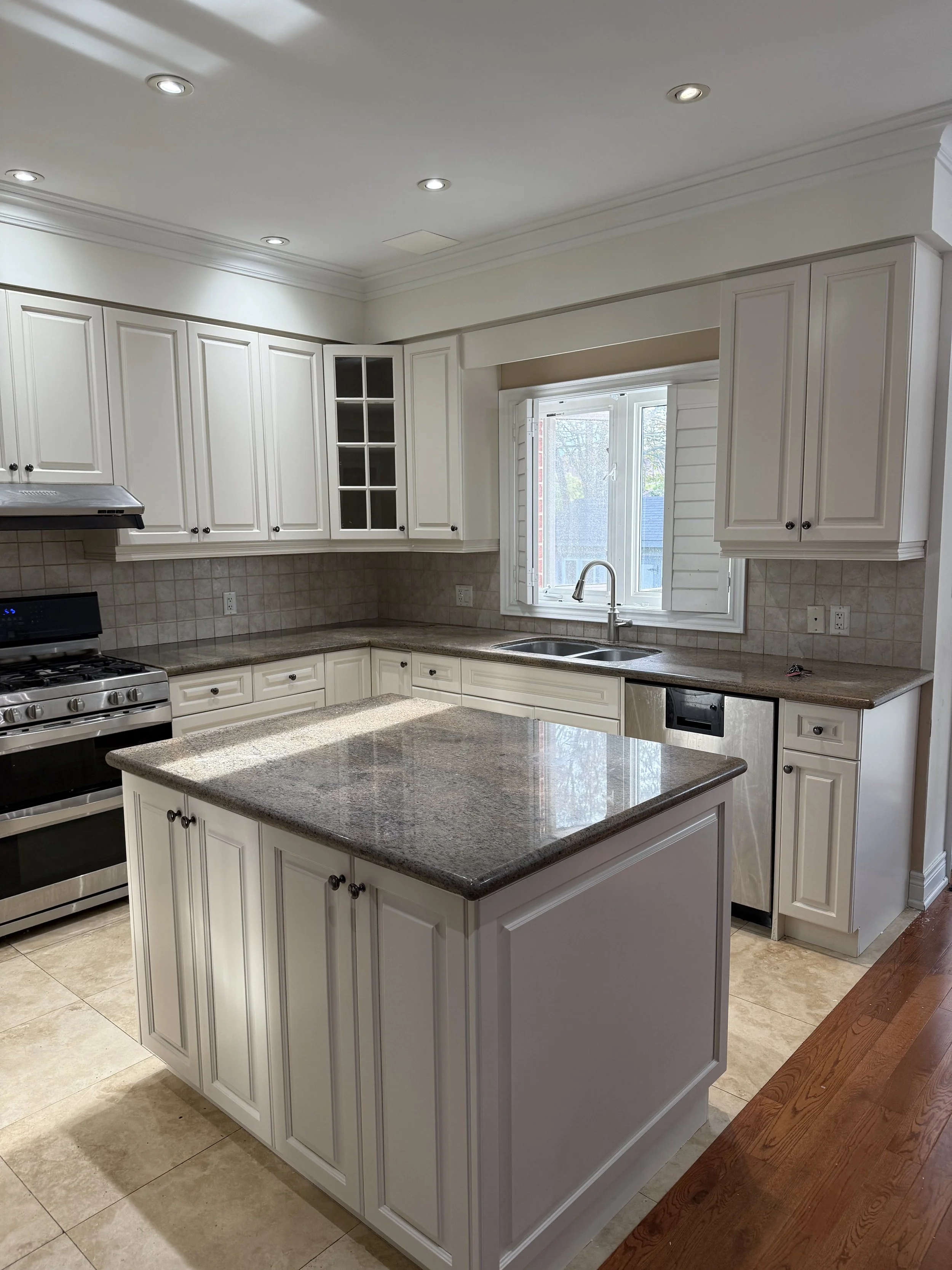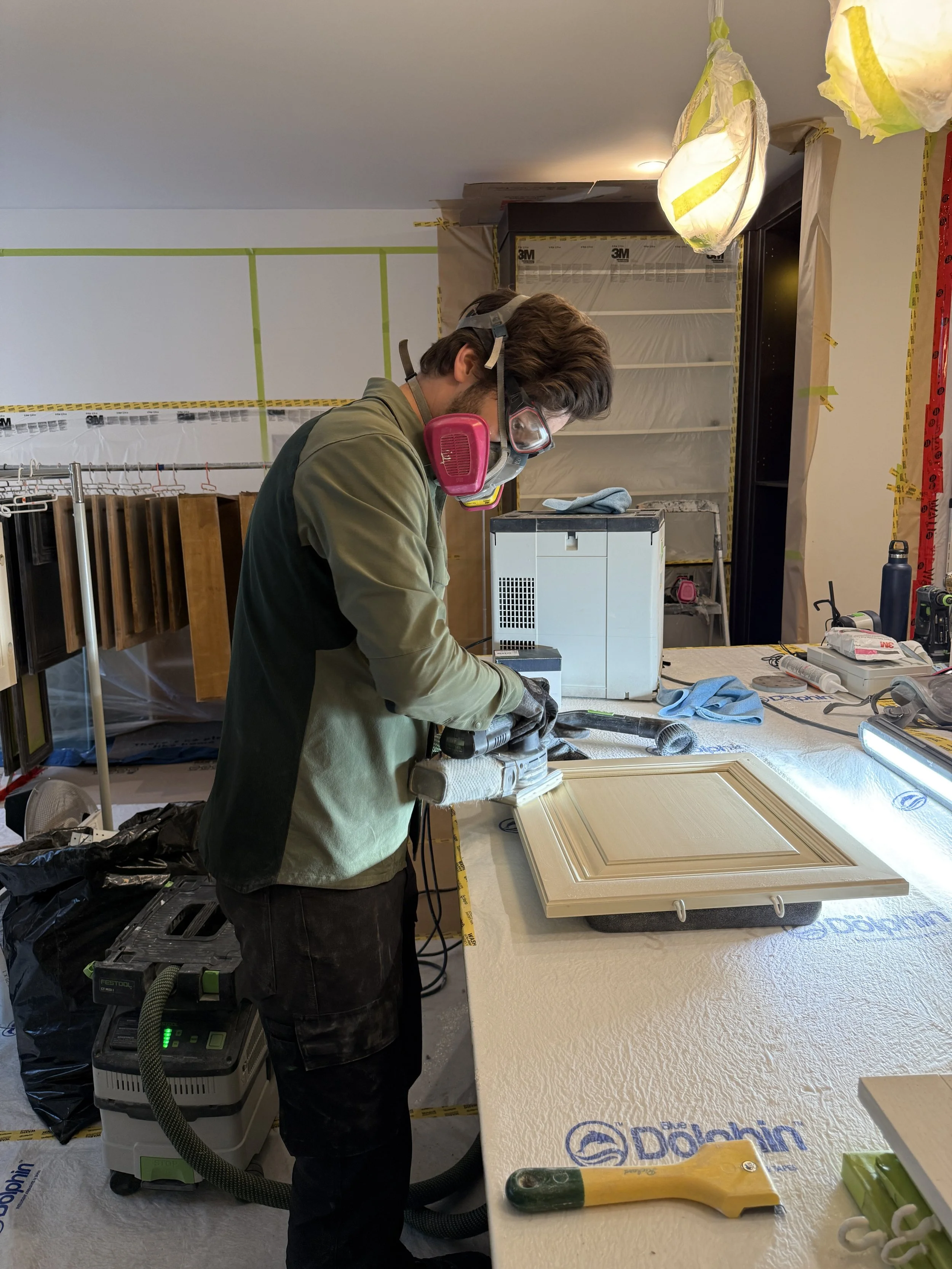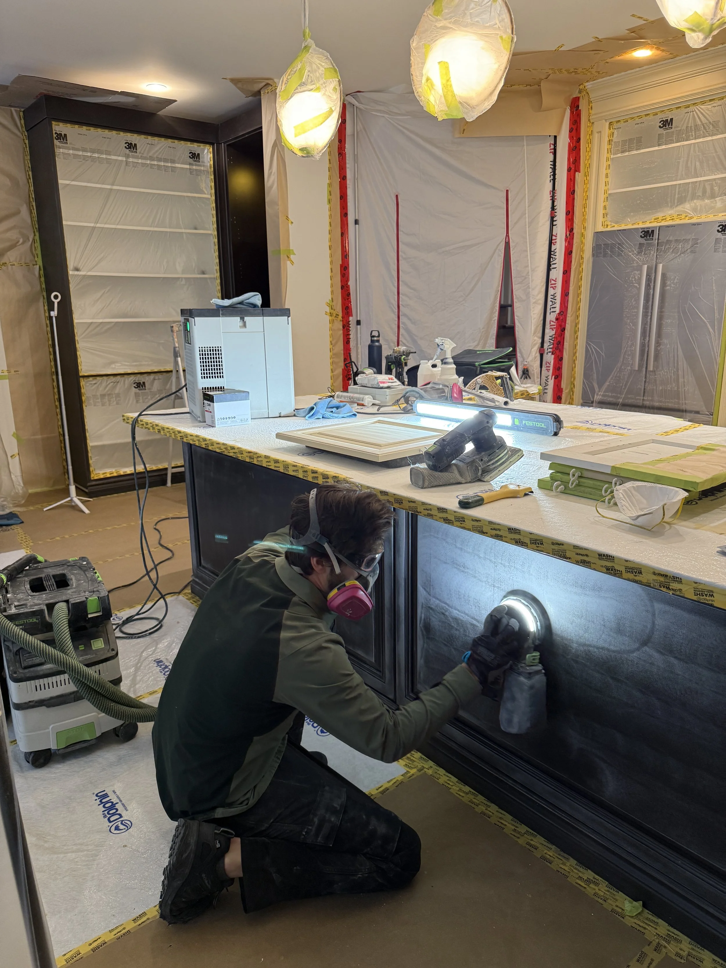 I use a proven 5-day in-home spray system that allows me to carefully control the environment while treating your home with respect and integrity. Cabinet doors and cabinet structures are sprayed on-site to the highest standard, eliminating the added cost and compromise of off-site spray booths. The process is clean, contained,and deliberate—leaving your home spotless and your cabinets finished to a factory-level result.