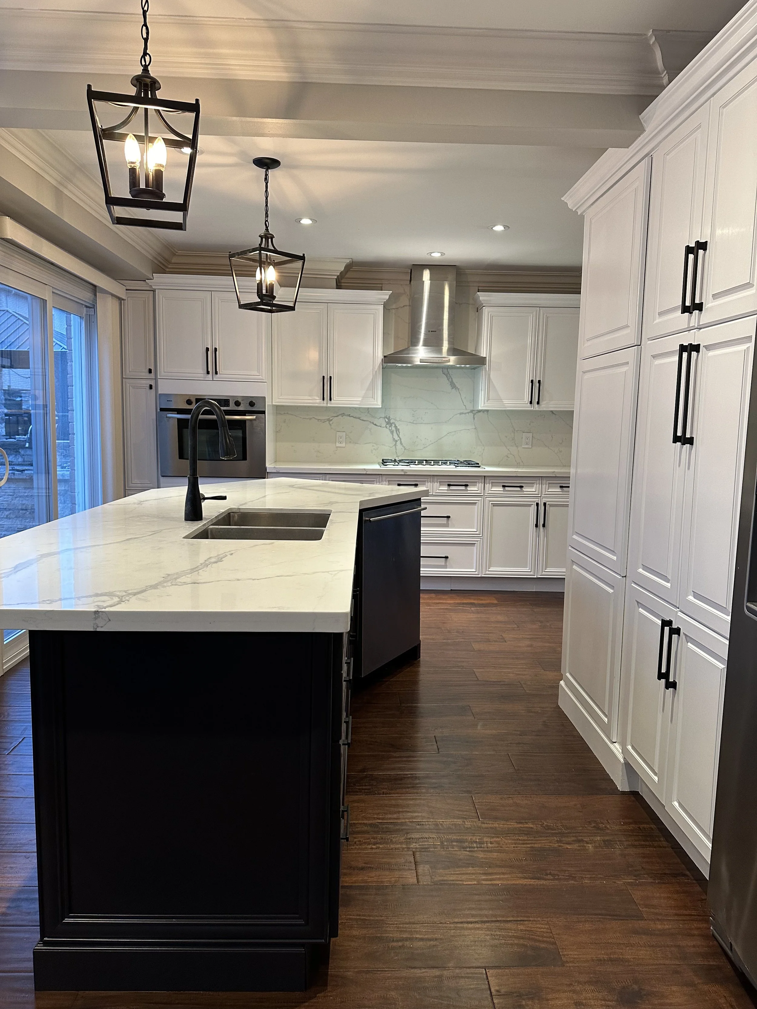 A professionally sprayed cabinet finish is extremely durable when the correct preparation and coatings are used. The result is a hard, smooth surface designed to withstand daily use, routine cleaning, and normal wear while maintaining its appearance for years.
